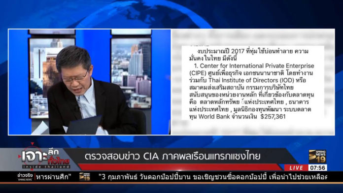 ได้ดูรายการ เจาะลึกทั่วไทย ของคุณดนัย เอกมหาสวัสดิ์ กับคุณอมรรัตน์ มหิทธิรุกข์ ทางสถานีโทรทัศน์ Spring News ออกมาแฉว่า กองทุนเพื่อประชาธิปไตยแห่งชาติของสหรัฐ สังกัดกระทรวงการต่างประเทศสหรัฐ หรือ CIA ภาคพลเรือน เพื่อภารกิจแทรกแซงการเมืองและสังคมในไทย