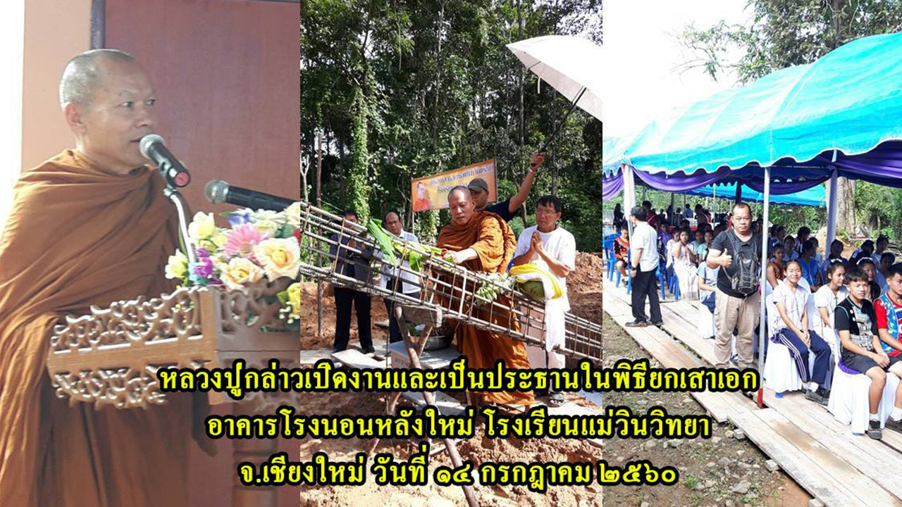เพื่อไปทำพิธียกเสาเอกโรงนอนเด็กนักเรียนชาวเขาสูง ๒ ชั้น กว้าง ๑๐ เมตร ยาว ๒๐ เมตร