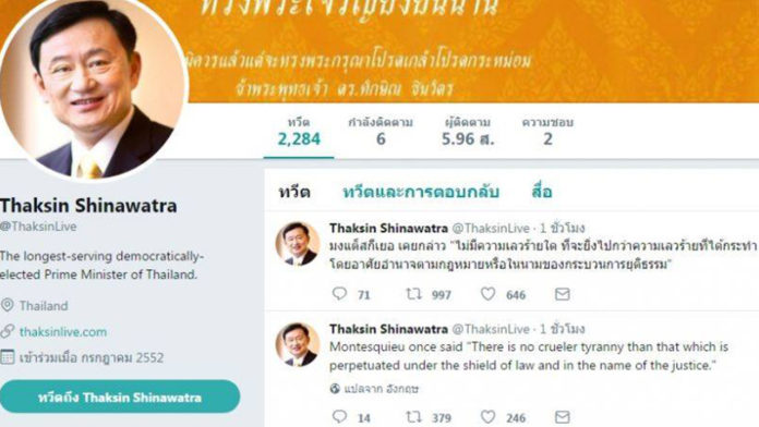 นายทักษิณ ชินวัตร อดีตนายกรัฐมนตรี เริ่มเคลื่อนไหวครั้งแรกหลังจาก น.ส.ยิ่งลักษณ์ ชินวัตร อดีตนายกรัฐมนตรีหนีออกนอกประเทศ โดยโพสต์ข้อความผ่านทวิตเตอร์ส่วนตัวว่า