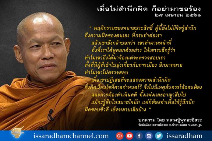 ทั้งที่ตลอด ๓ ปีที่ผ่านมา พุทธะอิสระก็ให้อภัยคนพวกนี้มาตลอด เมื่อเขามีจิตสำนึกผิด