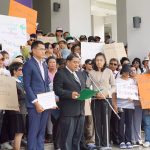 ผู้สื่อข่าวรายงานว่า กลุ่มศิษย์ธรรมกายส่วนใหญ่ยังคงสวมหมวก แว่นกันแดด และหน้ากากอนามัยปิดบังใบหน้า ขณะถือป้ายข้อความเรียกร้องขอความเป็นธรรม และกดดันให้มีการดำเนินคดีกับพระพุทธะอิสระและนายไพบูลอย่างเด็ดขาด โดยขณะที่ยื่นหนังสือได้ส่งเพียงตัวแทนที่เป็นผู้ลงชื่อในเอกสารแถลงข่าวเป็นผู้ยื่นและไม่ขอส่งตัวแทนเข้าไปภายในอาคารของดีเอสไอ กลุ่มศิษย์ทั้งหมดจึงได้ปักหลักอยู่บริเวณบันไดหน้าอาคาร สำหรับนายองอาจ ธรรมนิทา โฆษกกลุ่มศิษย์ฯที่ระบุว่าจะเดินทางมายื่นหนังสือที่ดีเอสไอด้วยตนเองนั้น แตไม่พบนายองอาจเข้าร่วมกิจกรรมของกลุ่มศิษย์ในครั้งนี้